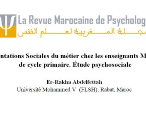 Représentations Sociales du métier chez les enseignants Marocains de cycle primaire. Étude psychosociale Er-RakhaAbdelfettah Université Mohammed V (FLSH), Rabat, Maroc E-mail: a.errakha@gmail.com Date de publication : 18/07/2020 Résumé
