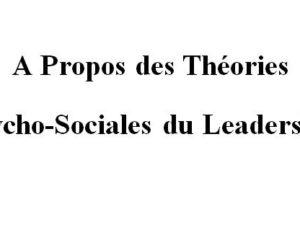 A Propos des Théories Psycho-Sociales du Leadership Souad BOUZIANI Étudiante en cycle de doctorat, Département de Psychologie, Faculté des Lettres et des Sciences Humaines, Université