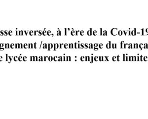 La classe inversée, à l’ère de la Covid-19, pour l’enseignement /apprentissage du français dans le lycée marocain : enjeux et limites.