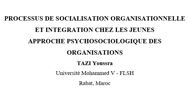 En effet, le phénomène de «socialisation organisationnelle» constitue l’un des champs d’études interdisciplinaires d’actualité qui suscite une grande attention à l’échelon international, de la part des chercheurs et praticiens, du fait qu’il renvoie aux processus psychosociaux de transmission de plusieurs atouts tels que ; des savoirs, rôles, comportements, valeurs, et attitudes appropriées dans un groupe social. D’autant plus qu’il se caractérise par une certaine dynamique et un enrichissement notable, se manifestant par des réalisations d’un grand nombre de recherches scientifiques, en particulier dans la psychologie sociale.